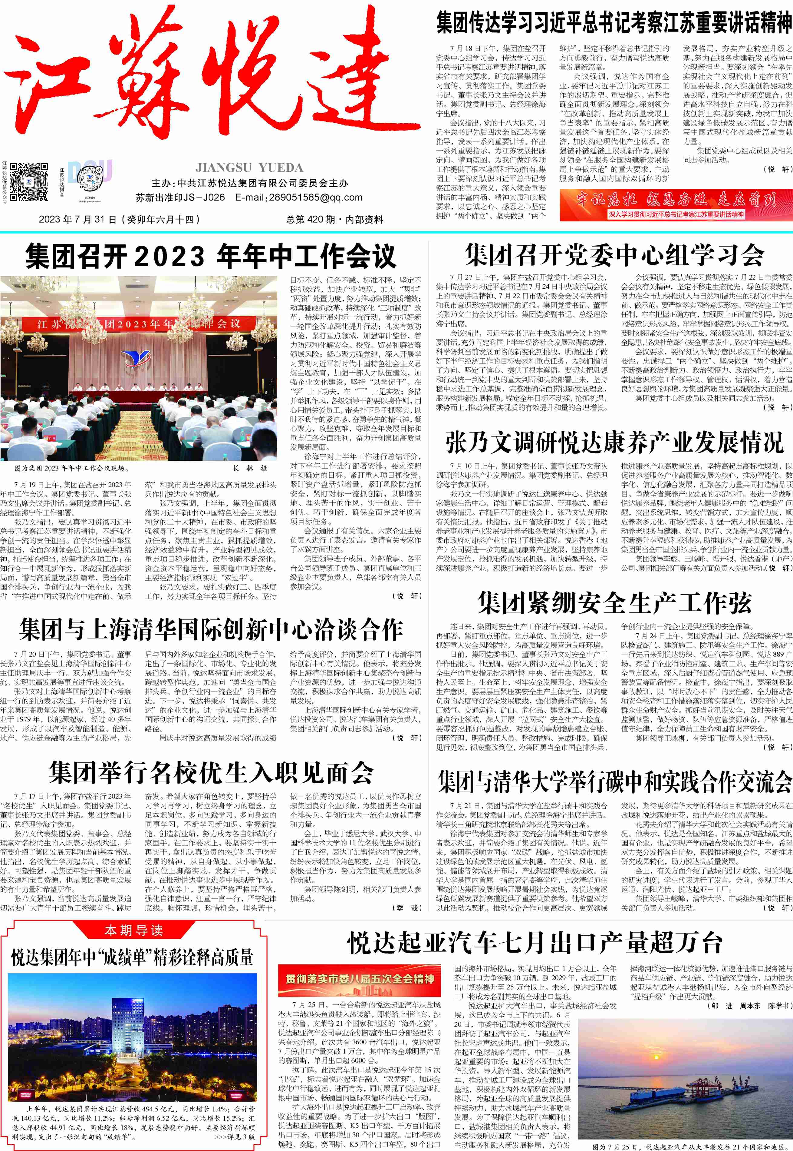 为深入贯彻中央和省市有关会议精神,全面总结分析集团上半年生产经营情况,部署安排下半年各项工作,7月14日,集团在盐召开2025年年中工作会议,动员全体干部员工凝心聚力、敢为善为、奋勇争先,确保全面完成年度各项目标任务。集团党委书记、董事长张乃文出席会议并讲话。集团党委副书记、总经理徐海宁主持会议。张乃文指出,今年以来,集团在市委、市政府坚强领导下,锚定全年目标任务,狠抓经营质效提升,全面强化内部管理,着力推进改革创新,党的建设持续加强,经营效益稳中有升,主导产业贡献加大,重点项目加快推进,科 ...